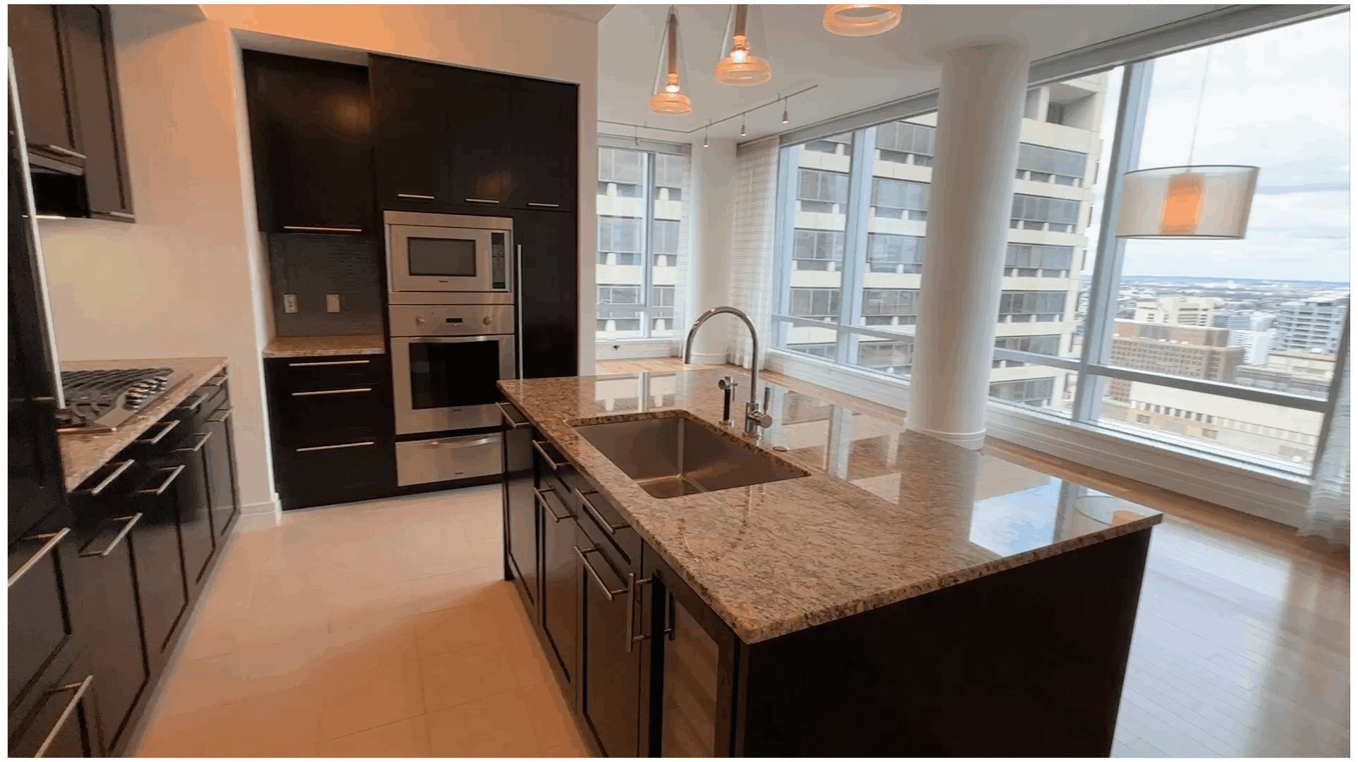 The units have walls of floor to ceiling windows so you'll have a lot of natural light and many of them overlook city hall with splendid views of the city.